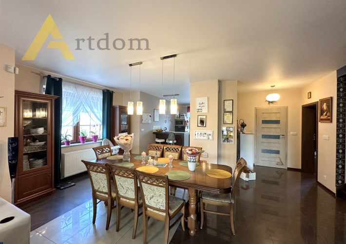 Nieruchomość posiada funkcjonalny rozkład na ok. 220 m2 znajdziemy salon z aneksem kuchennym, 5 sypialni, 2 łazienki oraz garaż na 2 auta.