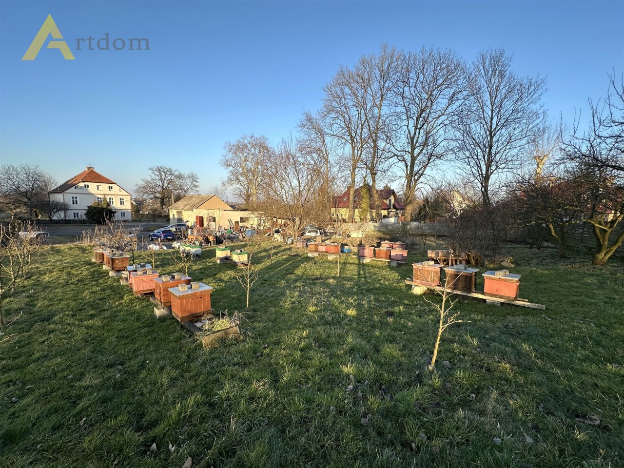 Teren działki zagospodarowany a na nim budynki gospodarcze, garaż, drewutnia, liczne nasadzenia oraz pasieka;)