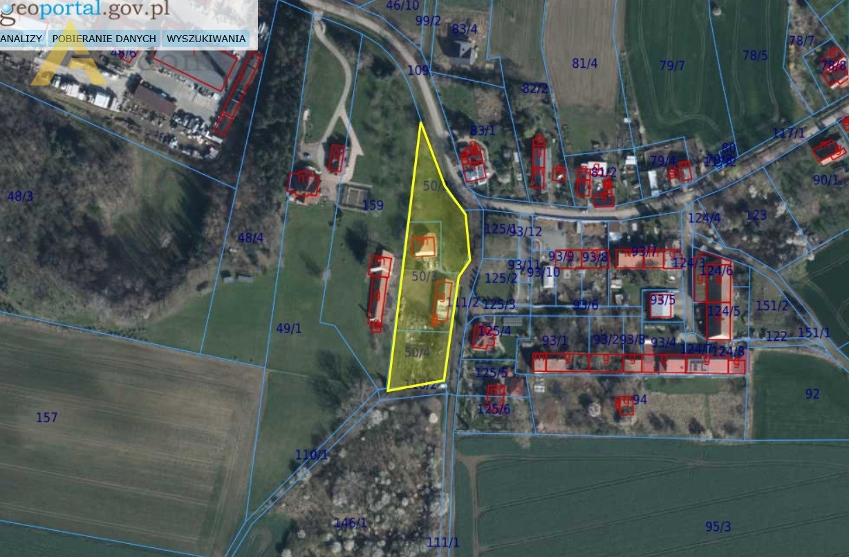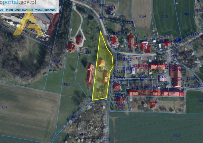 Na działce znajdują się budynki gospodarcze oraz dom poniemiecki bez podpiwniczenia w dobrej kondycji.