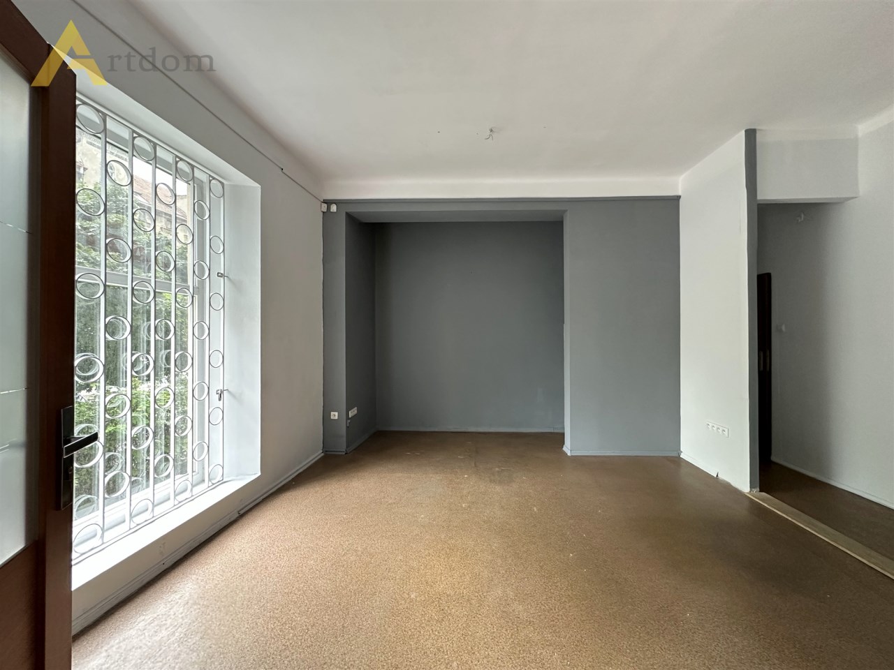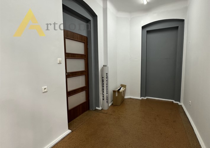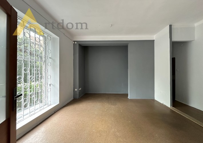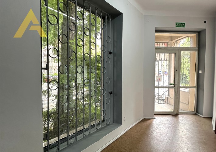Nieruchomość usytuowana jest na wysokim parterze kamienicy z niezależnym wejściem i dużą witryną zabezpieczoną kratami. Pod budynkiem ogólnodostępne miejsca parkingowe.