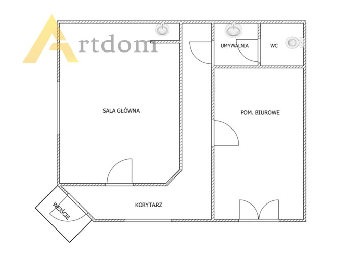 Korytarz został wydzielony z części sali głównej poprzez postawienie ścianek regipsowych (do ewentualnego wyburzenia)