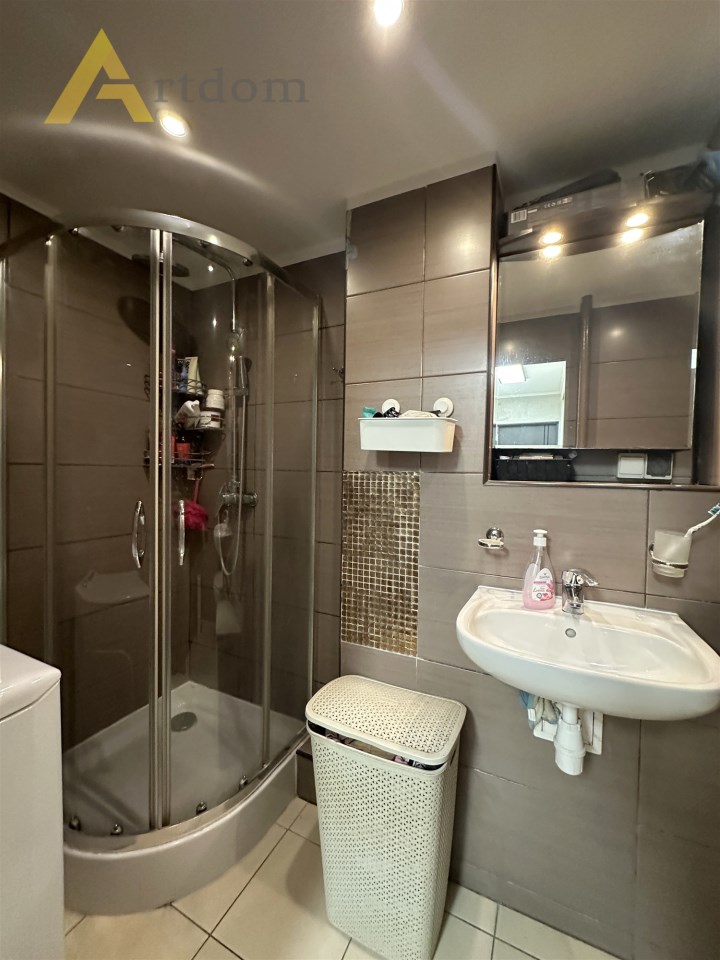 - łazienka z prysznicem, w pełni wykafelkowana