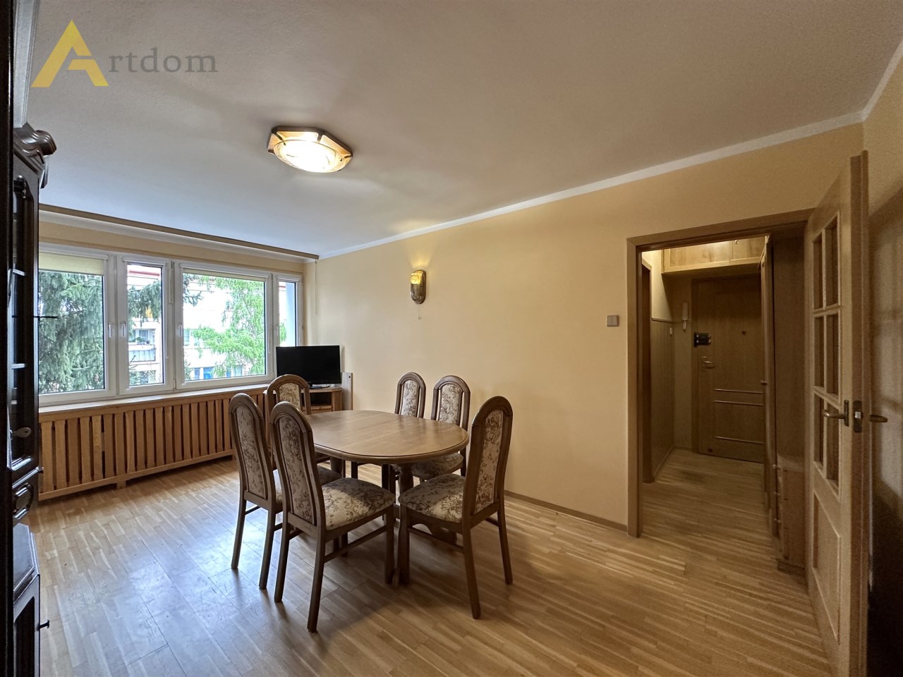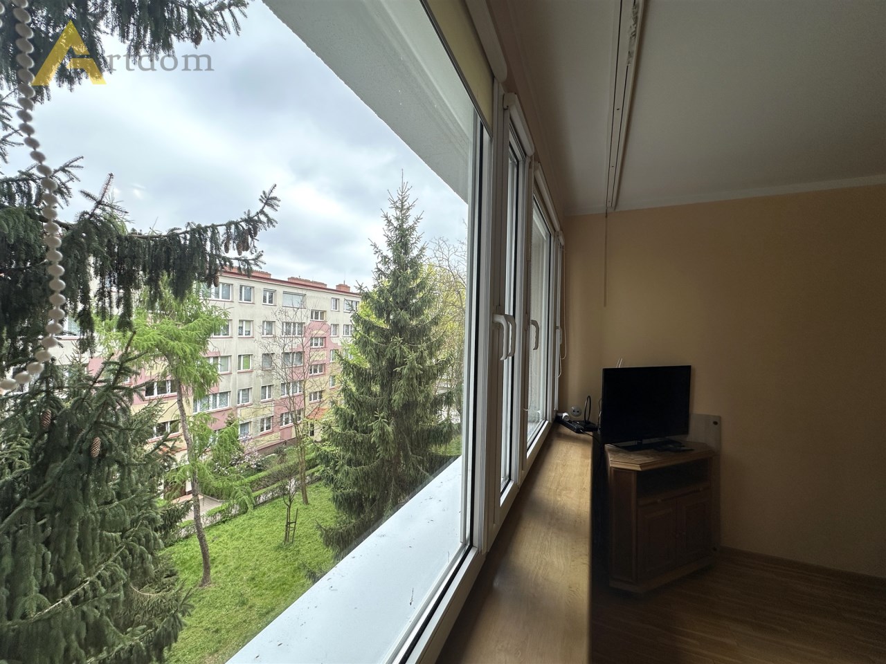 - 3 ustawnych pokoi (w tym jeden przejściowy z wyjściem na balkon),