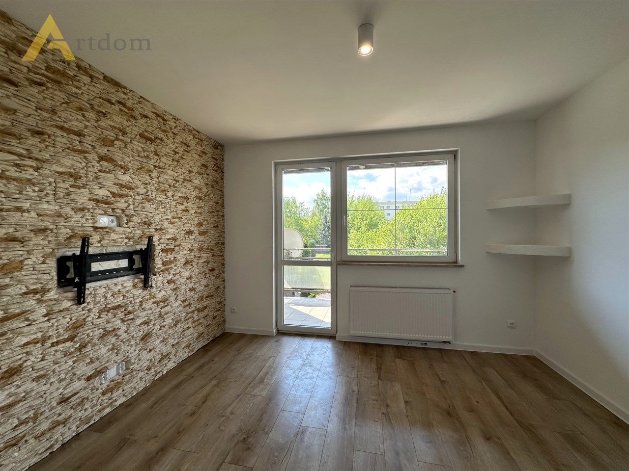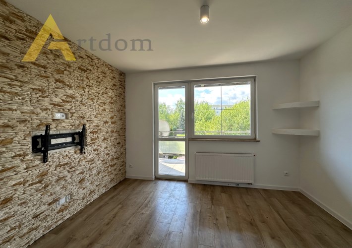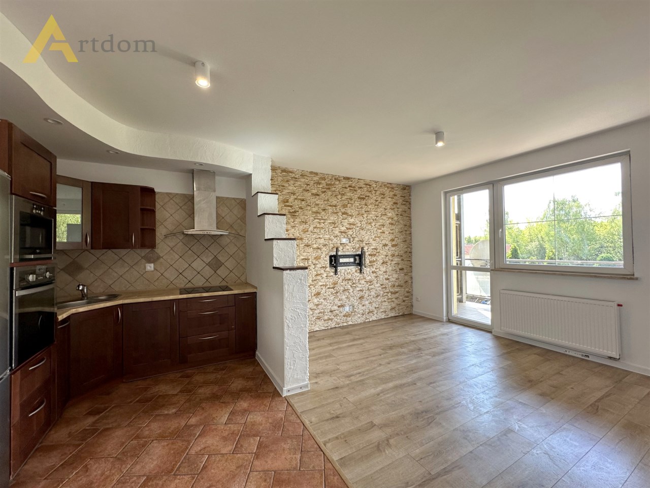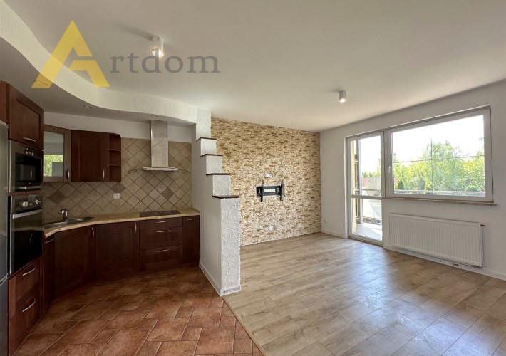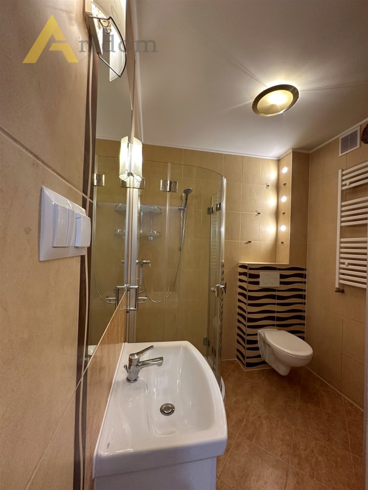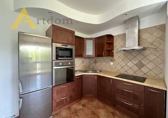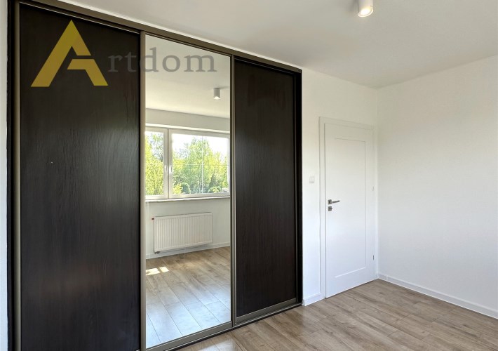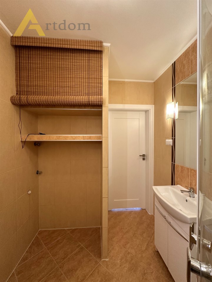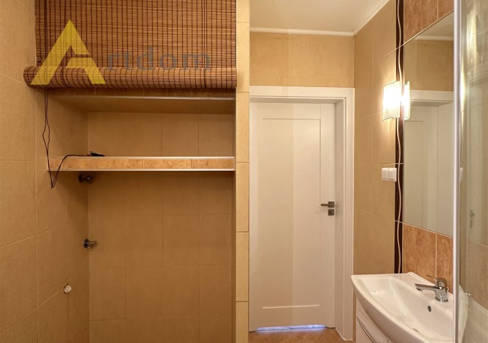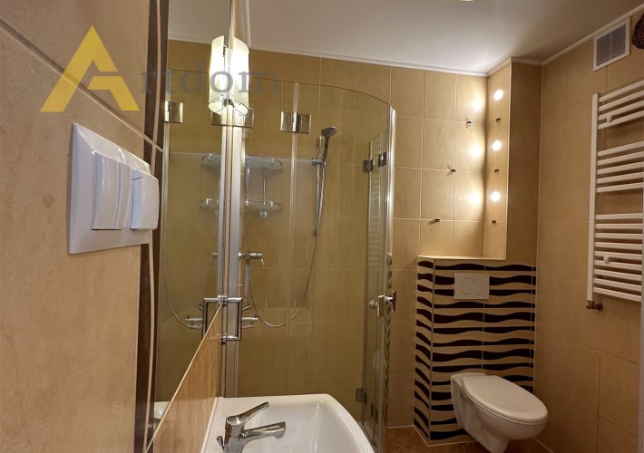 Kuchnia z zabudowie meblowej ze sprzętem AGD, łazienka z kabiną prysznicową. W sypialni duża zabudowana szafa.