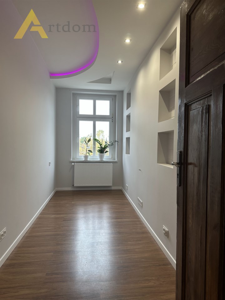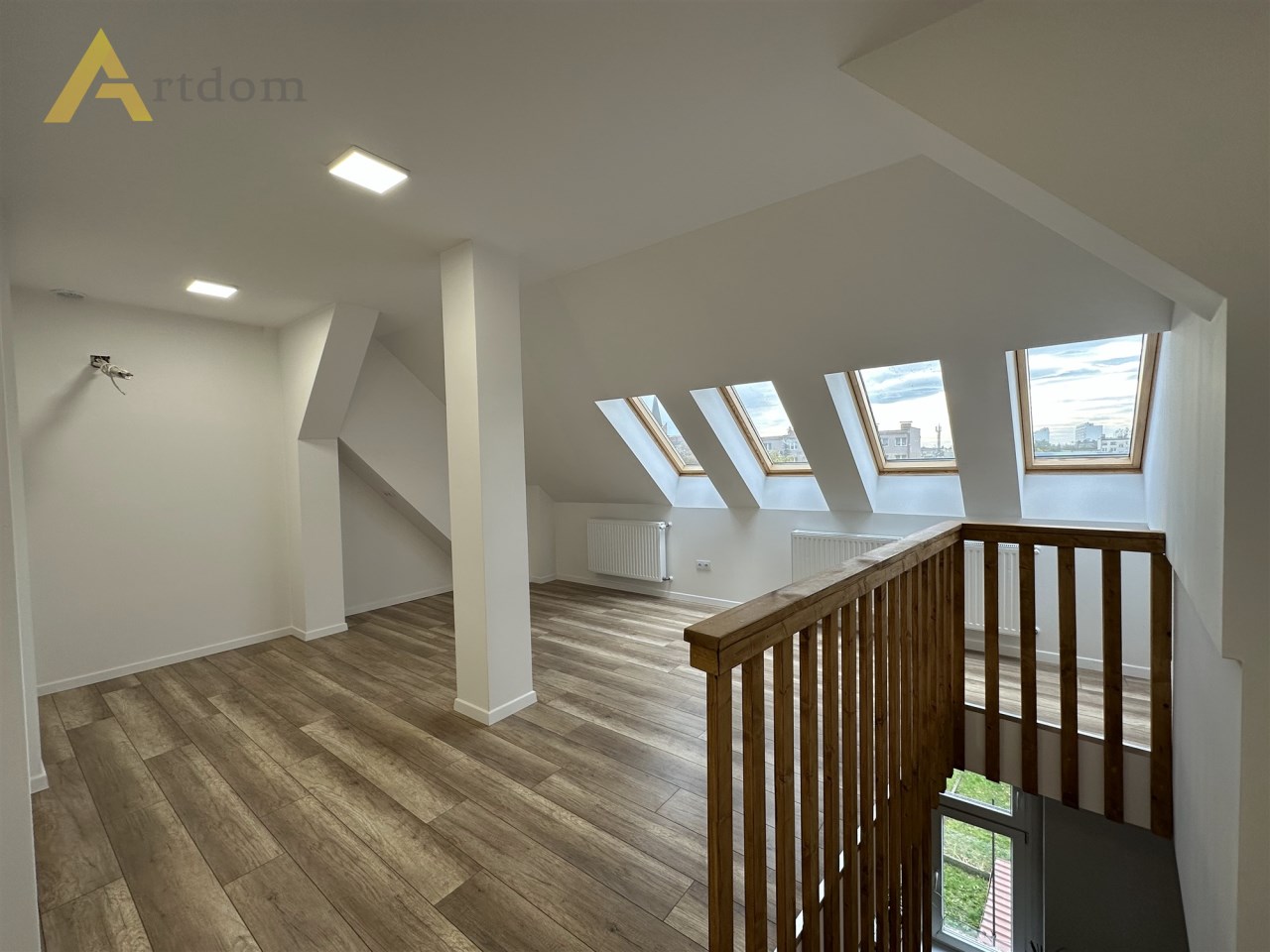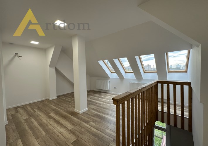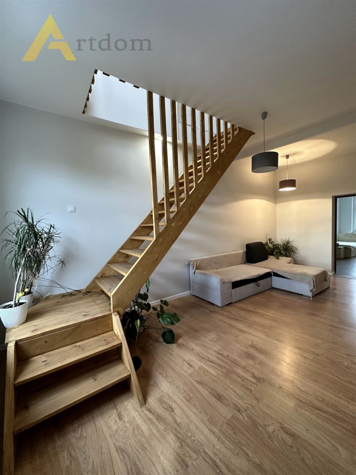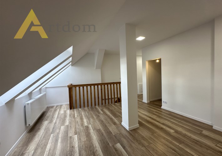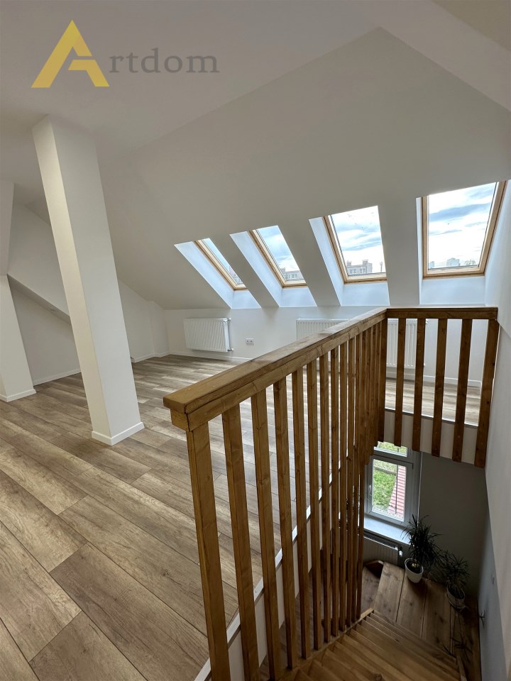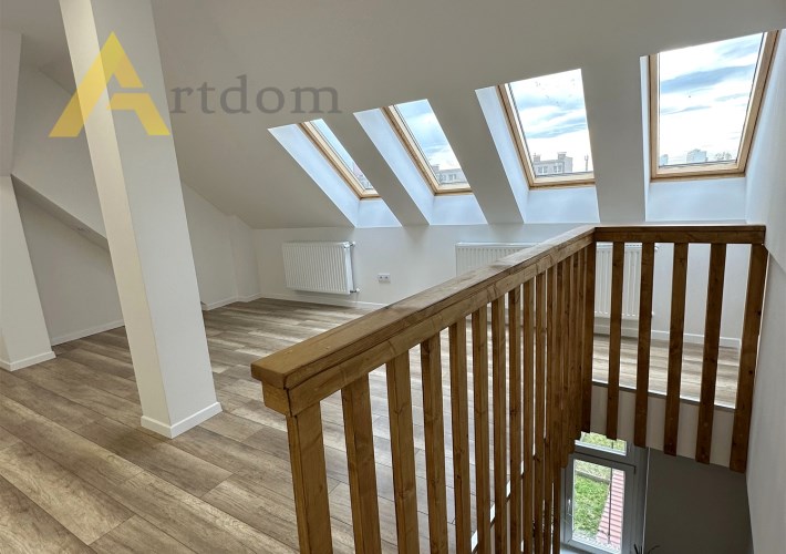 Lokal składa się z salonu, aneksu kuchennego, 2 sypialni, łazienki z oknem, przedpokoju oraz zaadaptowanego poddasza z przeznaczeniem na kolejną sypialnię, gabinet, biuro mieszkania przynależy duża piwnica (4,7 m2). Mieszkanie nie posiada balkonu.