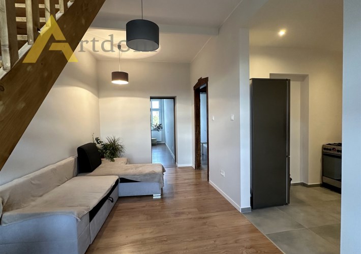 Proponujemy Państwu nietuzinkowe dwupoziomowe mieszkanie o powierzchni 78 m2 ulokowane na drugim piętrze, w kamienicy położonej w spokojnej okolicy i dobrze skomunikowanej z Centrum miasta. Dostęp do pełnej infrastruktury w pobliżu oraz ogródek z tyłu budynku wpływa na atrakcyjność oferty.