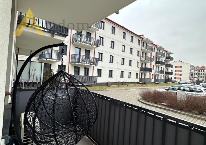 Apartament posiada również przestronny balkon oraz dużą komórkę lokatorską (7 m²).
