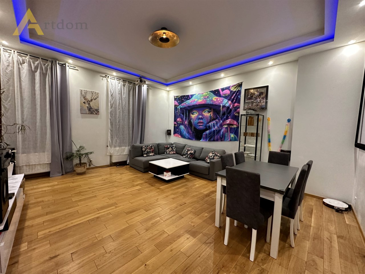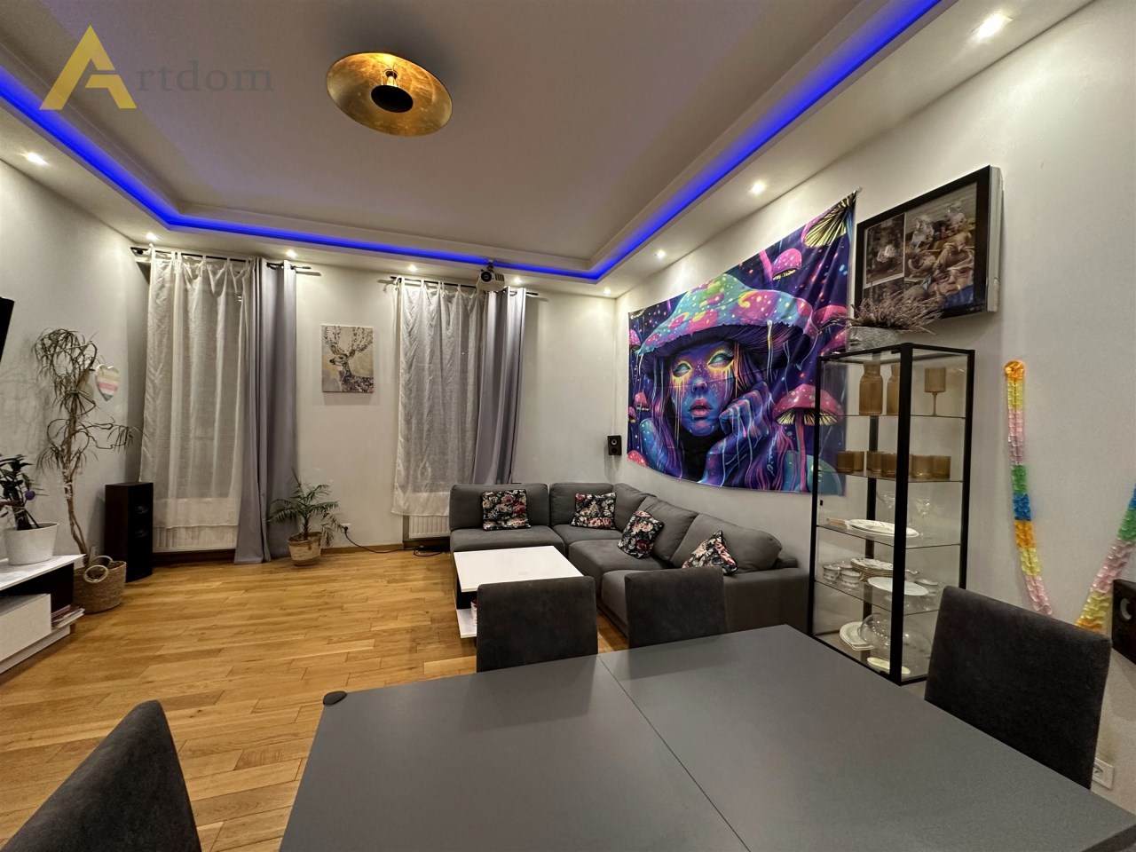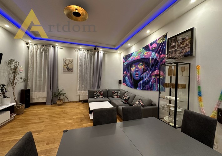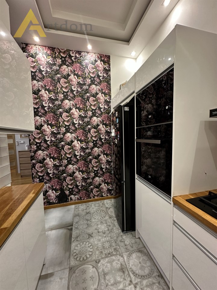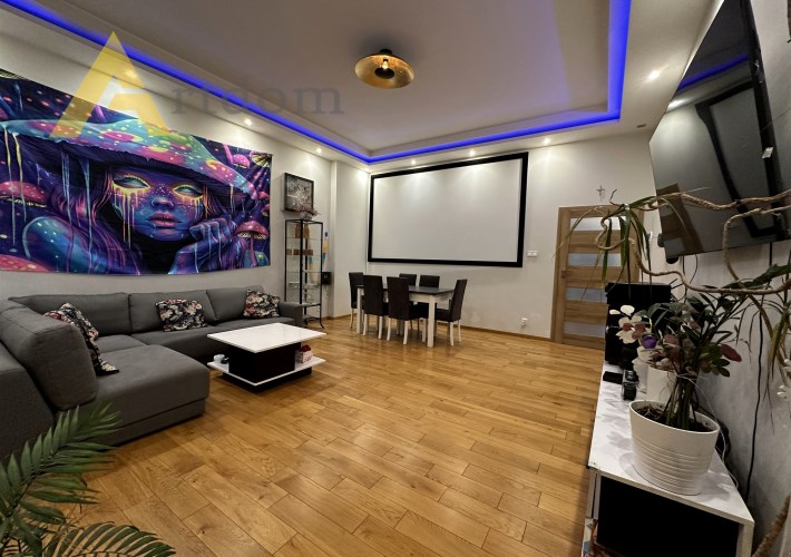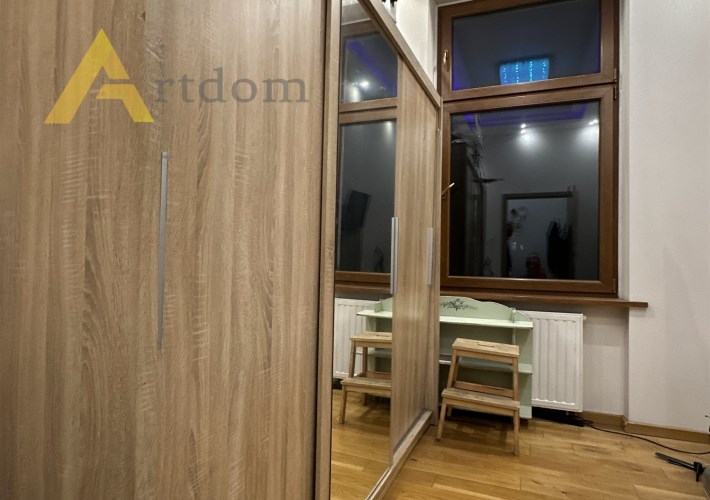 Centralnym punktem mieszkania jest salon w którym znajduję się wygodna część wypoczynkowa oraz stół jadalny. Do sypialni prowadzi długi przedpokój z klimatycznymi żyrandolami, ledami i halogenami. Sypialnie są usytuowane od podwórka co zapewnia 100 % spokój i intymność. W kuchni znajdziemy zabudowę meblową z pełnym sprzętem AGD (lodówka, zmywarka, piekarnik, płyta gazowa, mikrofala). Łazienka w modnych płytkach wyposażona jest w dużą, wygodną wannę z deszczownicą.